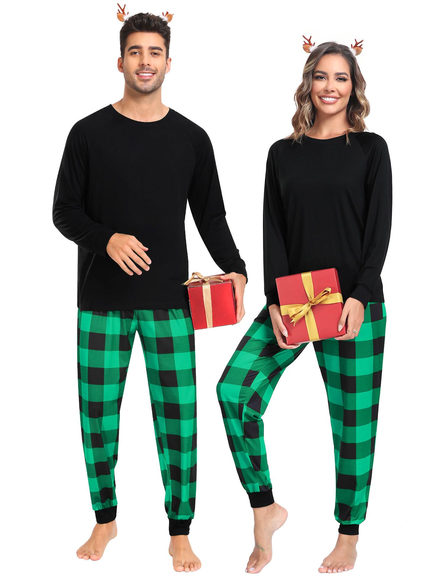 Festive Style: Christmas pajamas series: Golden Christmas Deer: elk brings Christmas blessings; Christmas Deer Head: auspicious blessings; Christmas Tree: Merry Christmas; Santa Claus: A wonderful night; all paired with classic plaid pants to add a touch of bright color to your holiday celebrations Soft and Comfortable Christmas Pajamas: Matching Family Pajamas Sets made from soft and durable rayon and spandex blend; Lightweight and skin-friendly and elasticity at the same time, it is very suitable for a family to wear on festivals and take photos Suit for the Whole Family: On the occasion of Christmas, put on intimate Christmas Pajama Sets and enjoy the time spent with family during the festive season; Perfect for snapping family photos on Christmas morning, exchanging gifts, decorating the tree, singing carols, distributing candy, or hosting cozy movie nights Pefect Gift: The best holiday gift for the family, the Christmas Family Pajamas Set allows the traditional holiday party to continue until late at night; celebrate the coming of the holiday with each other; play games; watch movies; tell stories; and enjoy family fun Care Tips: Soft Christmas pajama set is suitable for hand wash and machine wash, do not bleach; Each set of this festive pajama set is sold separately; Before ordering, please refer to the size chart to choose the appropriate men's pajama set; women's pajama set and children's pajama set